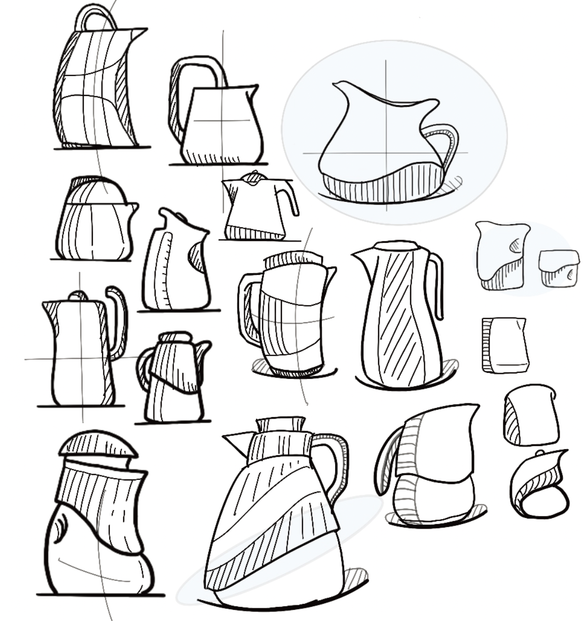 Family of Individuals. Develop forms using sketches and digital models to design a four-piece tea set: Teapot, creamer, sugar, and tray.